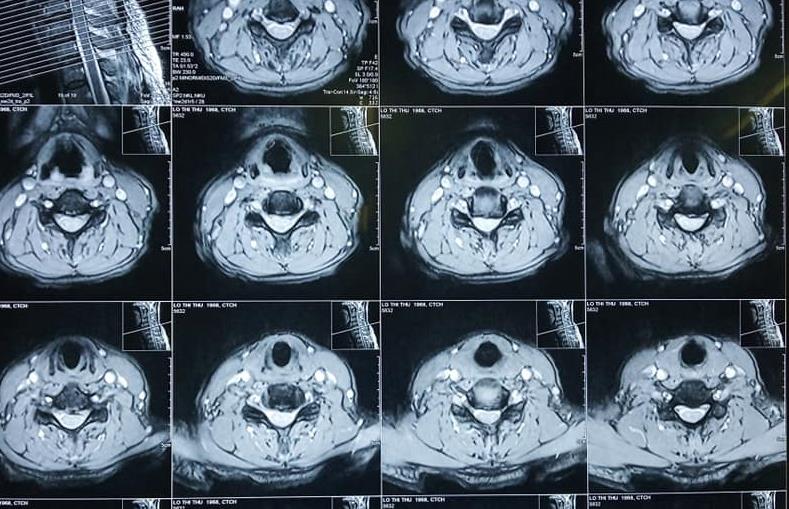 Bệnh nhân Lô Thị Thư ở Nghĩa Đàn, Nghệ An được chuyển tuyến đến Bệnh viện Chấn thương Chỉnh hình Nghệ An trong tình trạng sức khỏe yếu, đau đầu nhiều, sưng nề vùng mặt, đau hạn chế vận động cột sống cổ, tê bì hai tay, không ngồi dậy được.