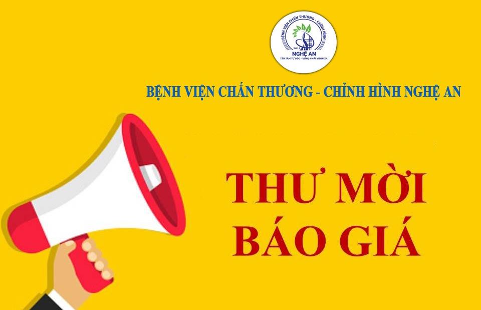 Thư yêu cầu báo giá về việc mua sắm linh kiện, phụ kiện, vật tư thay thế sử dụng cho thiết bị y tế phục vụ công tác chuyên môn tại Bệnh viện Chấn thương - Chỉnh hình Nghệ An