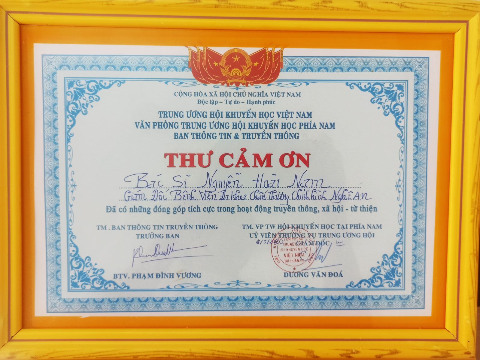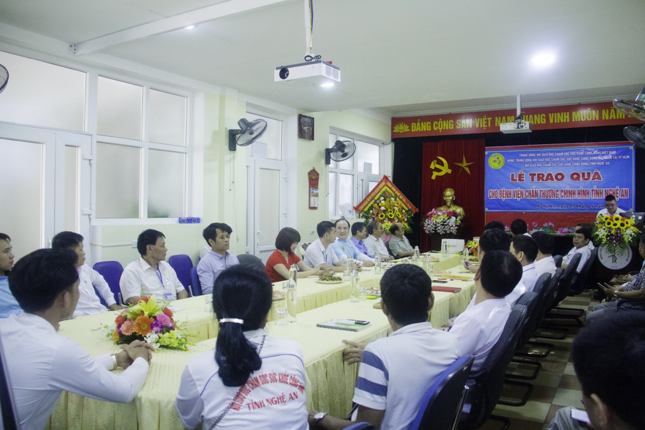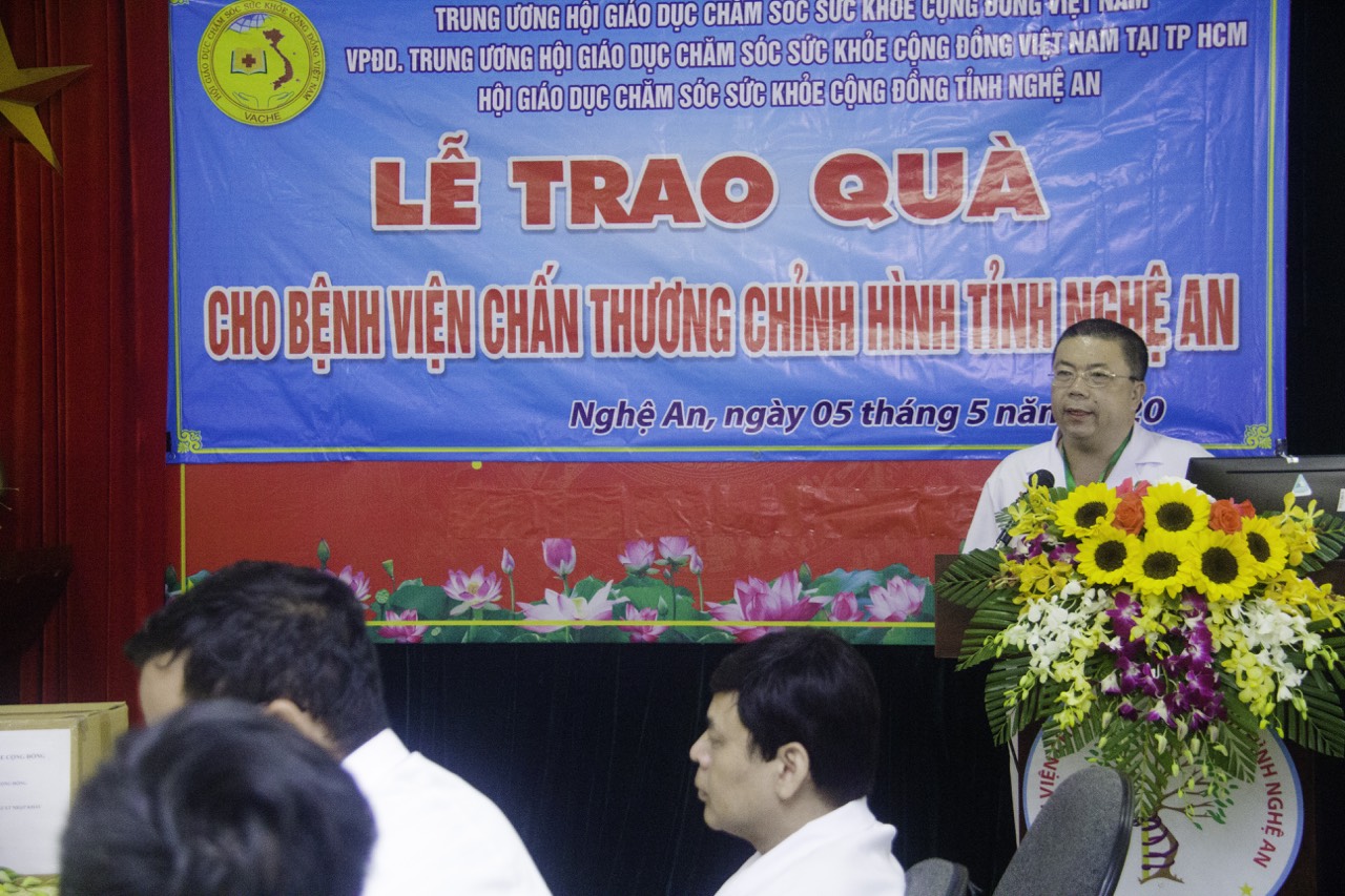 Chia sẻ tại buổi lễ trao quà, Ths., BS. Nguyễn Hoài Nam – Giám đốc Bệnh viện đại diện cho toàn thể cán bộ nhân viên BVCTCHNA gửi lời cảm ơn sâu sắc đến Hội GDCSSKCĐ đã quan tâm và đồng hành cùng Bệnh viện trong cuộc chiến đẩy lùi Covid-19, thực hiện chung sứ mệnh bảo vệ sức khỏe cho mọi người.